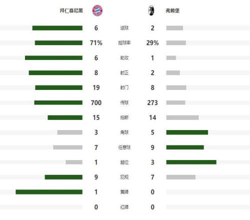 此前存在感不強的凱恩,在第60分鐘終于在進攻端嶄露頭角,禁區內輕松推射建功,幫助拜仁將領先的優勢擴大到了4-2,憑借這一粒進球,凱恩在前十一輪戰罷,將自己的聯賽進球數提升到了14球,繼續獨自領跑德甲射手榜,第78分鐘奧利塞完成助攻帽子戲法,一腳直塞讓替補登場的杰克遜破門得分,將領先的優勢擴大到了5-2,比賽最后時刻,奧利塞轟出一腳世界波,將全場比分定格為了6-2。