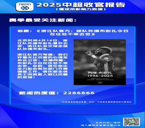 在本賽季中超聯(lián)賽中,最受人關注的新聞是浙江隊外援布彭扎去世的新聞。現(xiàn)在我們還記得當時的那個下午,懂球帝編輯部在看到外媒的相關報道時的那種錯愕。