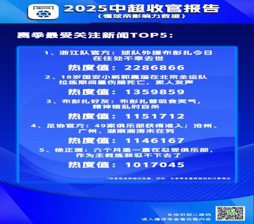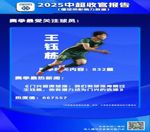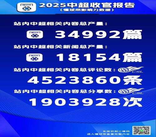 2025賽季中超聯(lián)賽已經落下帷幕,一年一度的《懂球帝中超收官報告》正式跟大家見面啦。今年,我們將從懂球帝影響力數(shù)據(jù)、賽事基礎數(shù)據(jù)以及中超MVP相關數(shù)據(jù)三個方面,來為您呈現(xiàn)這一整個賽季中超的盛況。