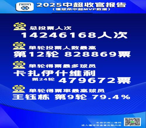 本賽季30輪的懂球帝中超MVP評選中,共收到了約1425萬人次的有效投票,這一數(shù)據(jù)相比于去年的1178萬人次提升了近21%。