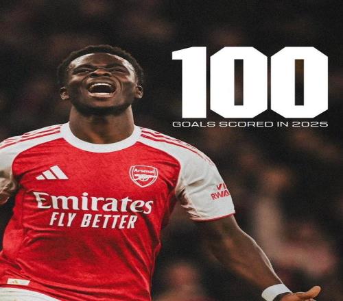 賽后來自阿森納官方的統(tǒng)計指出,算上本場比賽梅里諾和薩卡的兩粒進球,他們2025年在正式比賽中已經(jīng)打進了100粒進球。