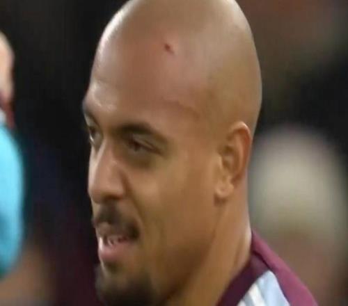 進球后在客隊看臺前慶祝,馬倫的頭部被投擲物砸傷了